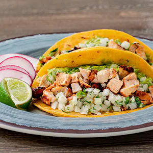 Achiote-marinated Grilled Chicken Tacos with Crushed Avocados and Fuego Salsa