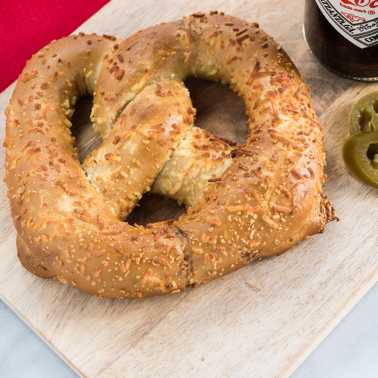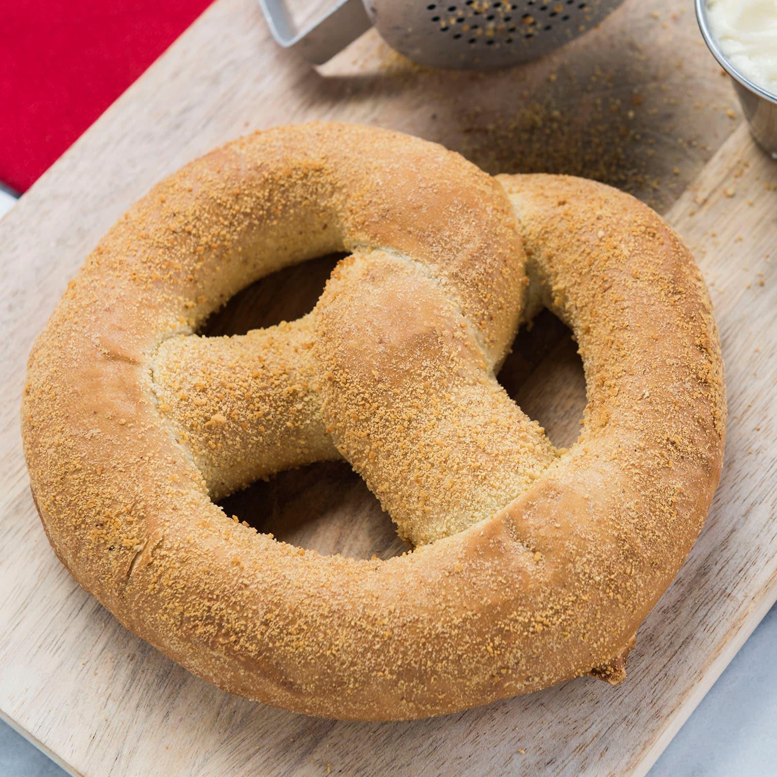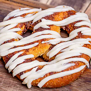 Cream Cheese-filled Pretzel topped with Cinnamon Sugar and Cream Cheese Icing