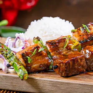 Tear into some toothsome jungle skewers at this quick-service stand featuring spicy or sweet beef, chicken or bacon-wrapped asparagus.