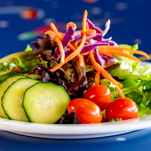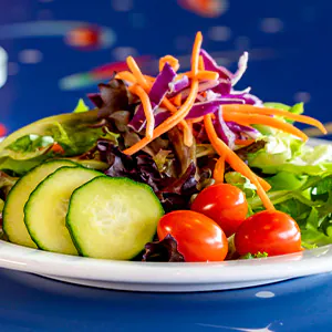 Mixed Greens topped with Tomatoes, Carrots, and Cucumbers with Italian or Ranch Dressing