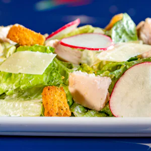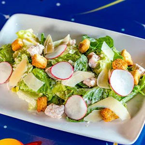 Grilled Chicken Breast atop Crisp Romaine Lettuce, tossed in Caesar Dressing with Croutons and Parmesan