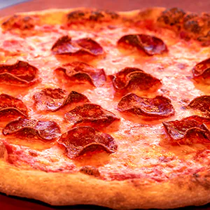 Celestial Tomato Sauce topped with Mozzarella Cheese and extra large slices of Pepperoni