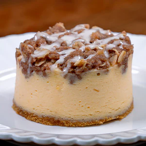 Peach Cheesecake with Peach Filling, topped with Oat Cobbler and Vanilla Glaze