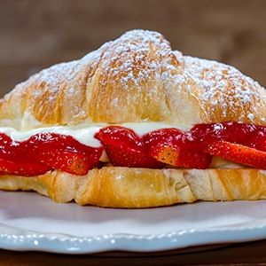 flaky Croissant filled with Egg, Bacon, Cheese, and Hollandaise Sauce