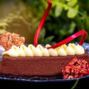 Brownie Base, Raspberry Sauce, Tiramisu, Dark Chocolate Mousse