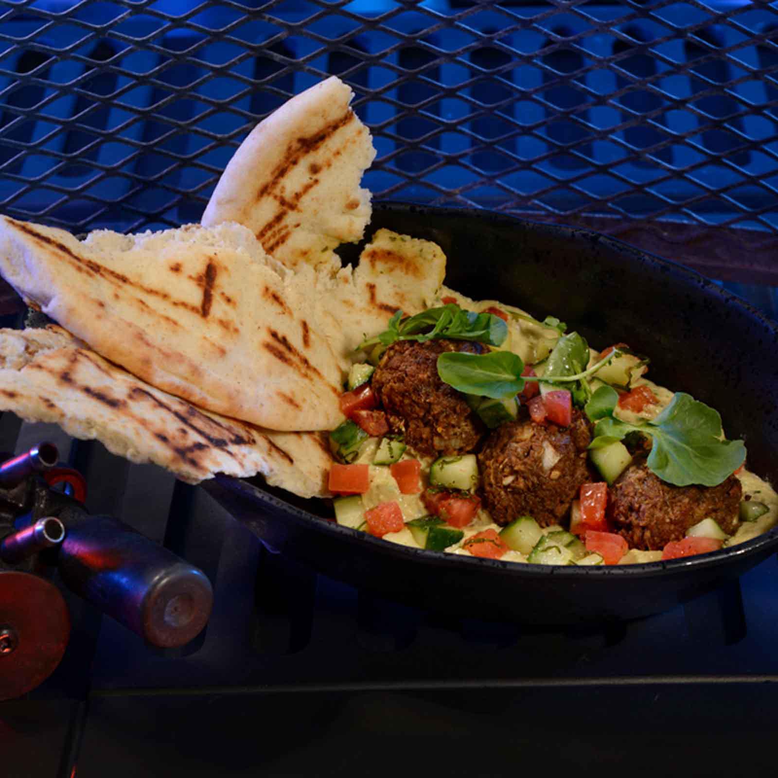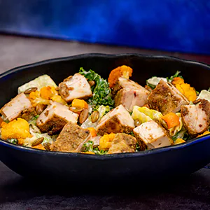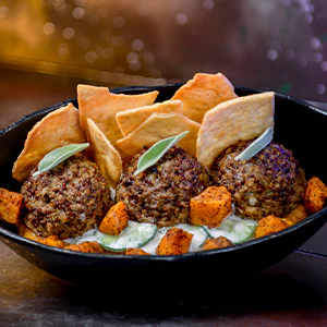 Bao Bun, Impossible™ Patty, Broccolini, House Sauce and a Cuties Mandarin served with choice of small Lowfat Milk or small DASANI® Water. Meets Disney Nutrition Guidelines for Complete Meals without substitutions
