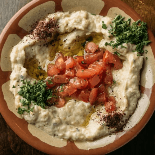 Grilled eggplant, pureed with tahini, olive oil, lemon juice & garlic
