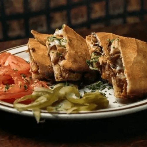 Baked pita bread stuffed with minced (beef & lamb) parsley & spices.