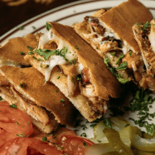 Baked pita bread stuffed with minced (beef & lamb) & Syrian cheese